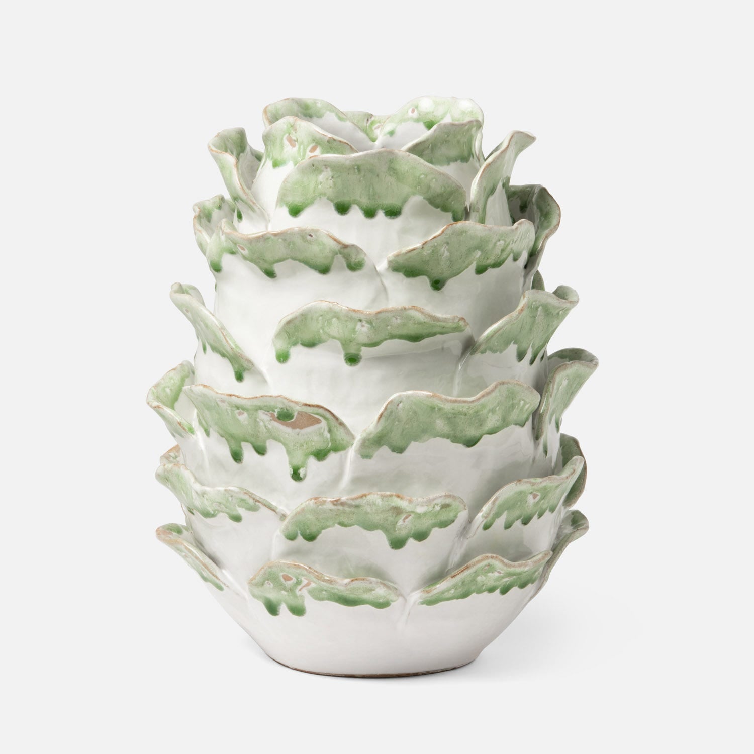 The Esteban Vase is crafted with intricate layers of hand-painted petals, offering a unique and elegant decoration for any space. Each vase is edged with a delicate jade-green glaze and no two are alike. Available in three sizes, it's the perfect choice for adding a touch of beauty to any home.