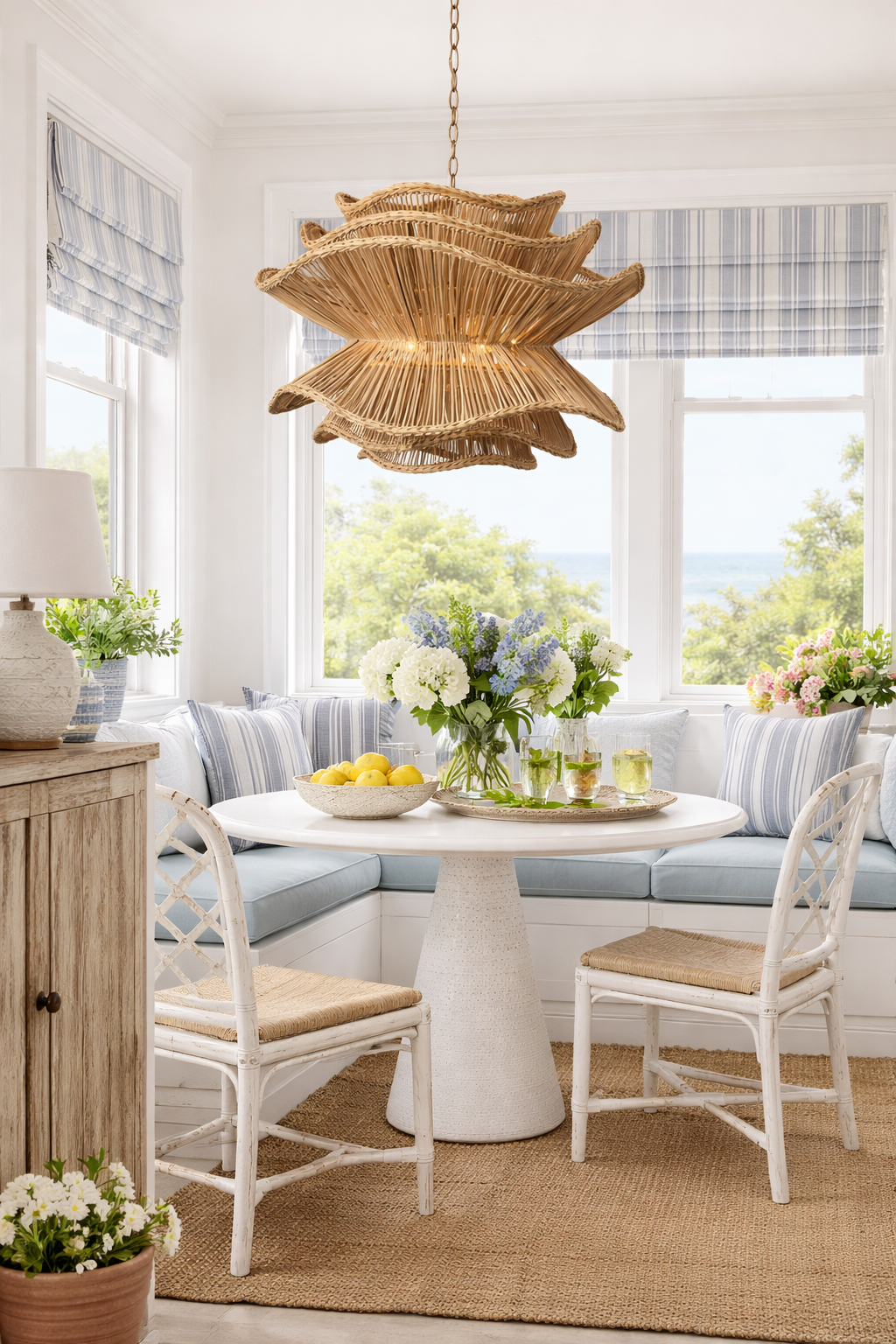 In an abstract shape inspired by flowers, six layers of rattan, whose densely braided edges coax them into waves, provide a soft diffused light. Now available in Dark Charcoal and White!