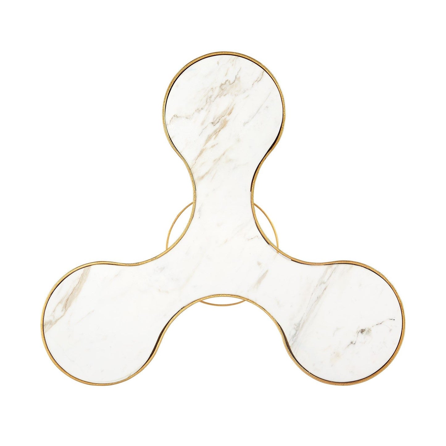 Fine design can be playful. The Clover Side Table is proof! Gold-leafed iron provides an elegant frame to the hand-cut marble top which forms a three-leaf clover. We love a trio of Clover tables nested together, creating intricate and whimsical patterns.