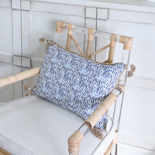 This Cinder Blue Lumbar Pillow is decorated with blue brush strokes and accented with jute pipe and tassels. Pairs beautifully with a crisp white upholstered chair for a modern coastal vibe.