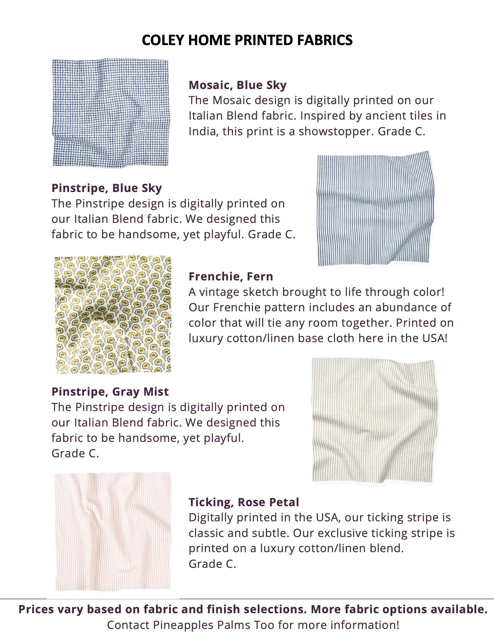 From the Coley Home collection! The Nash Swivel Glider is casual, inviting and creates a moment of relaxation for any room. The swivel glider base makes it the perfect addition to a nursery, living room, or bedroom. Its clean lines and breezy slipcover are a beautiful palette for customization. The slipcover is easy to clean and replace as needed. We have personally selected a few of our favorite printed and solid fabrics, however, more fabric choices are available to make this piece truly yours!